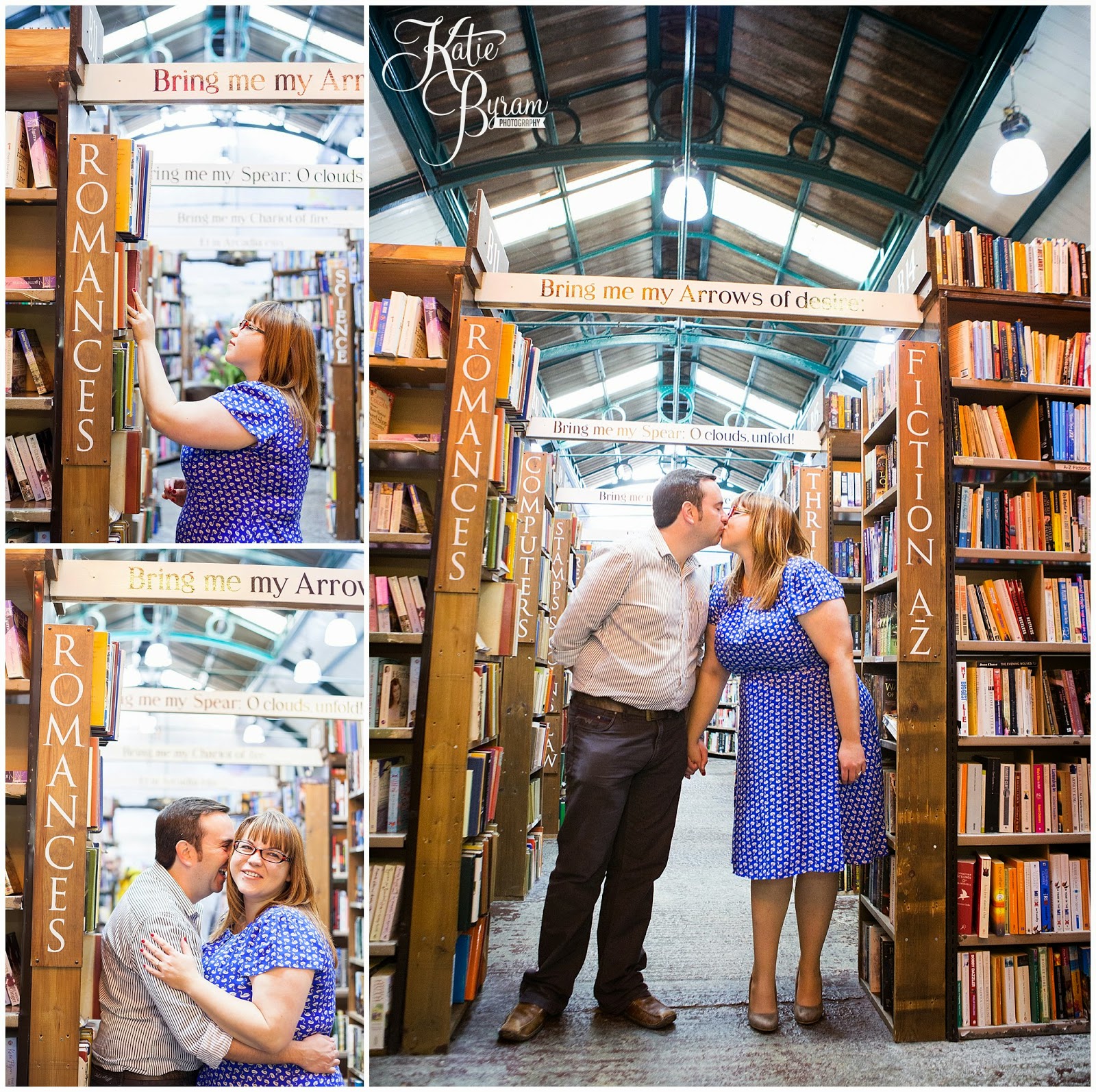barter books alnwick, barter books wedding, barter books engagement shoot, book themed wedding, book themed engagement shoot, katie byram photography, alnwick wedding photography, book shop alnwick, northumberland wedding photographer, quirky engagement shootPINIMAGE